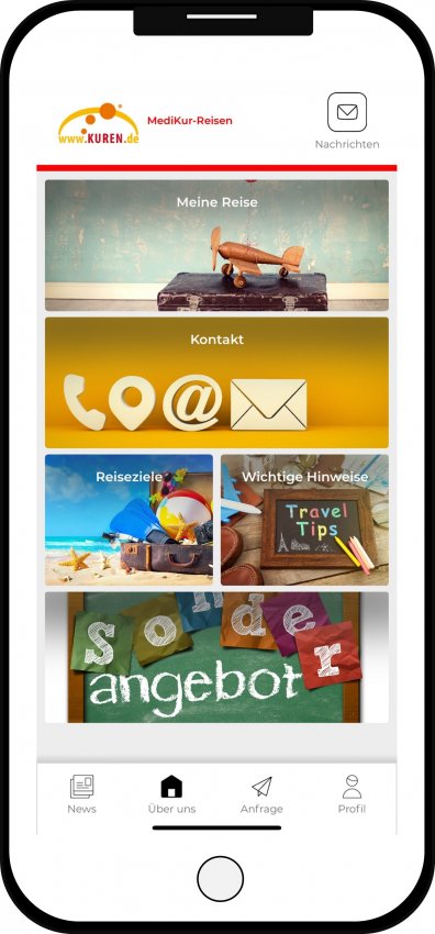 Mit der MediKur Reisen App sind Sie immer bestens informiert. Sie erhalten von uns regelmäßig Nachrichten mit Sonderangeboten und Last-Minute-Reisen direkt auf Ihr Smartphone. So verpassen Sie keine Gelegenheit mehr, Ihren nächsten Traumurlaub zu einem unschlagbaren Preis zu buchen.
